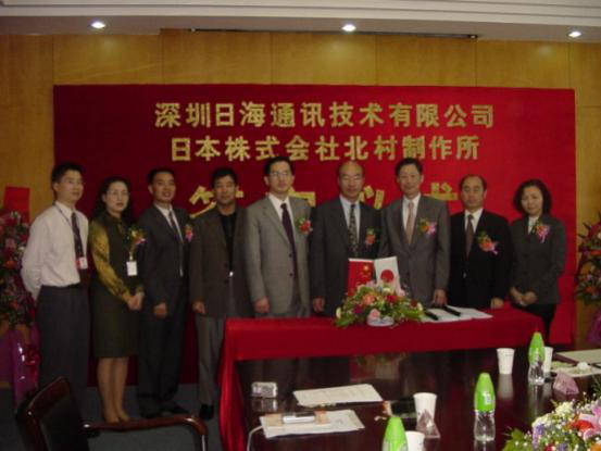 2004年4月13日,公司与日本株式会社北村制作所就户外一体化机房的设计、生产、销售和服务在AG凯发K8国际智能签订了合作协议,共同合资组建深圳北村AG凯发K8国际机房技术有限公司,并举行了隆重的签字仪式。公司周展宏董事长、王文生总裁、杨飞董事、机房事业部负责人孟庆光和日本北村制作所北村泰作董事长、永井正幸常务董事等出席了签字仪式。
